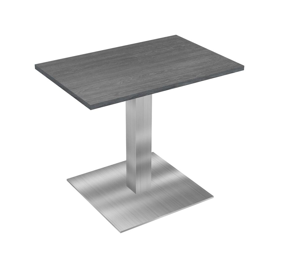 Table Modulaire Pour Bureau, Restaurant, Cafétéria, Salle De Pause Et Service De Restauration, Avec Plateau Gris, Pieds Carrés Chromés Et Plaque De Base Carrée Chromée
