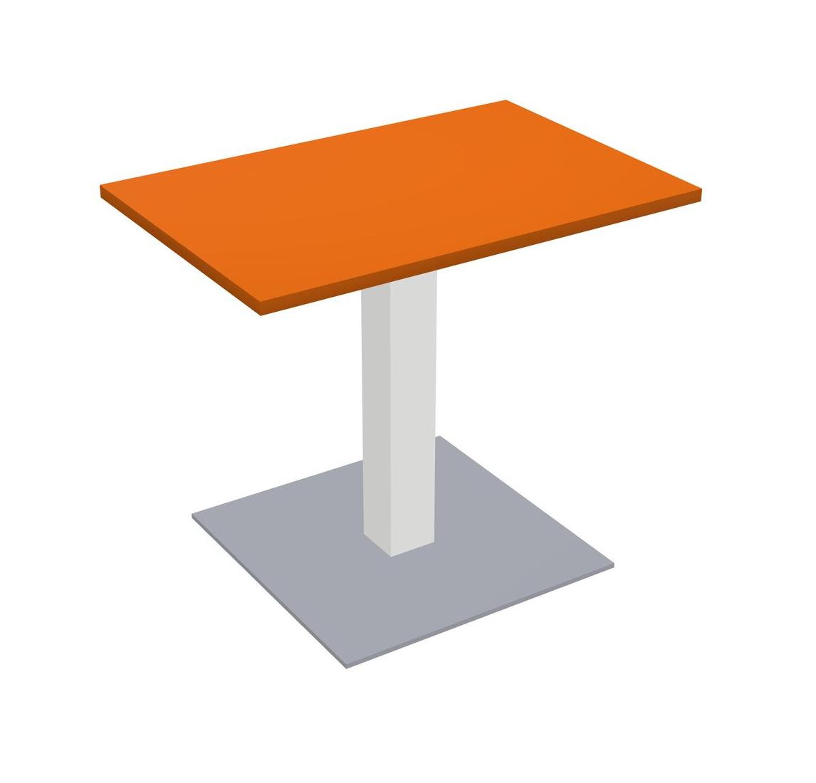 Table Modulaire Pour Bureau, Restaurant, Cafétéria, Salle De Pause Et Service De Restauration, Avec Plateau Orange, Pieds Carrés Blancs Et Base Carrée Grise