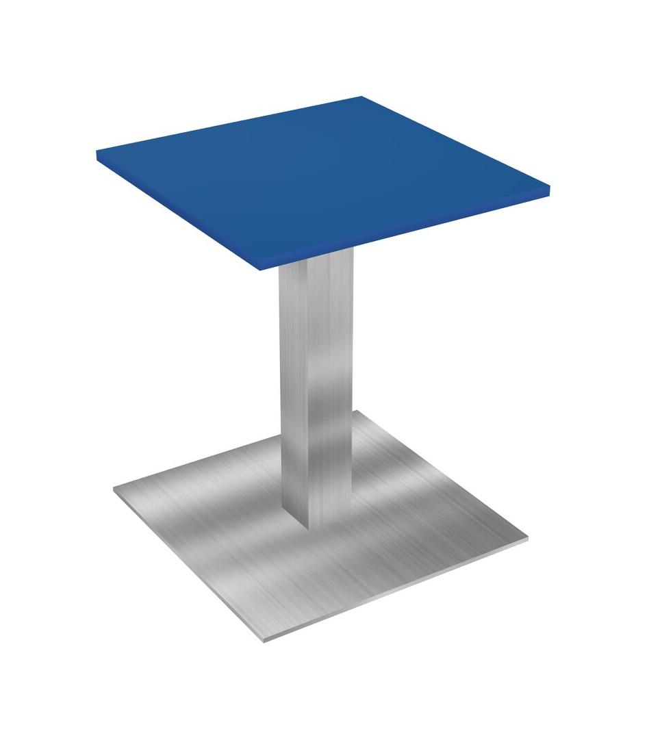 Table Modulaire Pour Bureau, Restaurant, Cafétéria, Salle De Pause Et Service De Restauration, Avec Plateau Bleu Prismatique, Pieds Carrés Chromés Et Plaque De Base Carrée Chromée