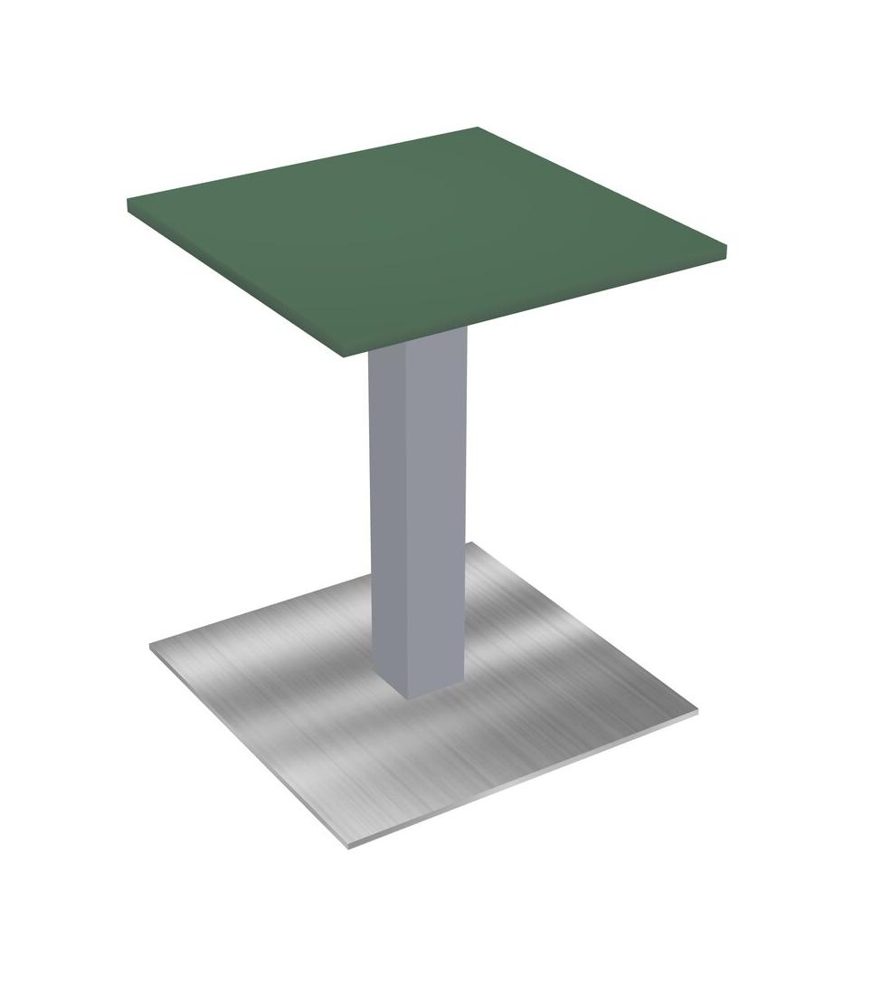 Table Modulaire Pour Bureau, Restaurant, Cafétéria, Salle De Pause Et Service De Restauration, Avec Plateau Vert, Pieds Carrés Gris Et Plaque De Base Carrée Chromée
