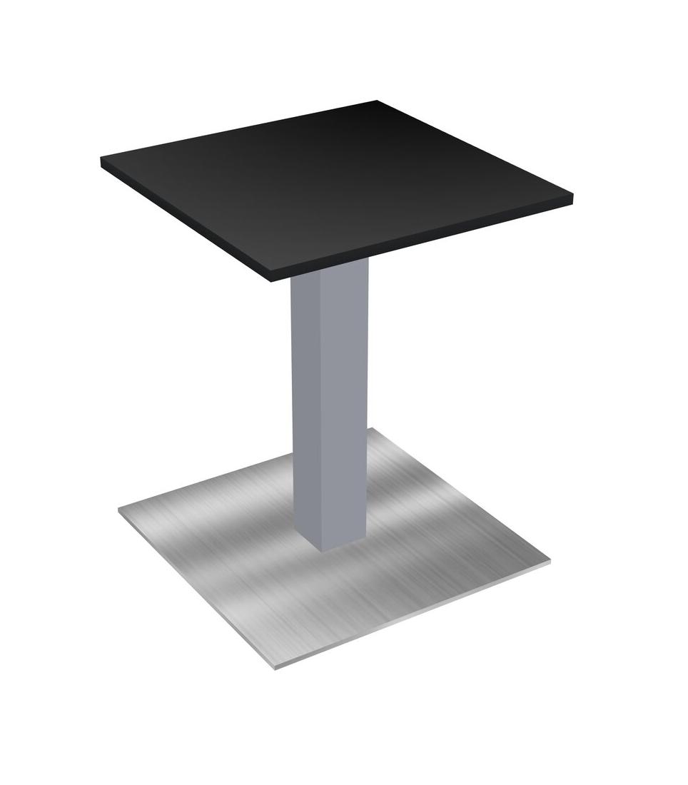 Table Modulaire Pour Bureau, Restaurant, Cafétéria, Salle De Pause Et Service De Restauration, Avec Plateau Noir, Pieds Carrés Gris Et Plaque De Base Carrée Chromée
