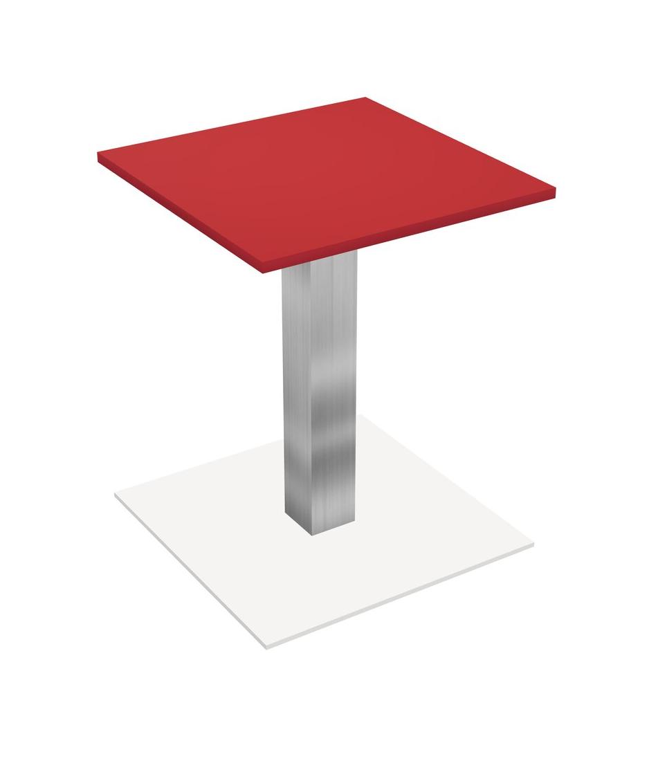 Table Modulaire Pour Bureau, Restaurant, Cafétéria, Salle De Pause Et Service De Restauration, Avec Plateau Rouge Prismatique, Pieds Carrés Chromés Et Plaque De Base Carrée Blanche