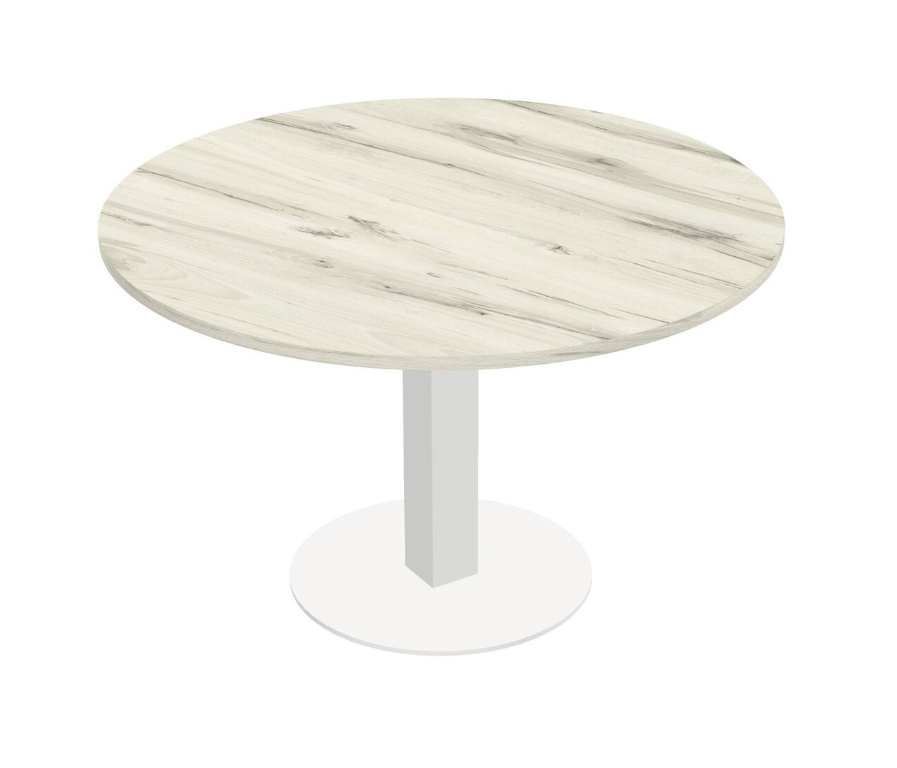 Table Modulaire Pour Bureau, Restaurant, Cafétéria, Salle De Pause Et Service De Restauration, Avec Plateau En Bois Heinne Holz, Pieds Carrés Blancs Et Base Ronde Blanche
