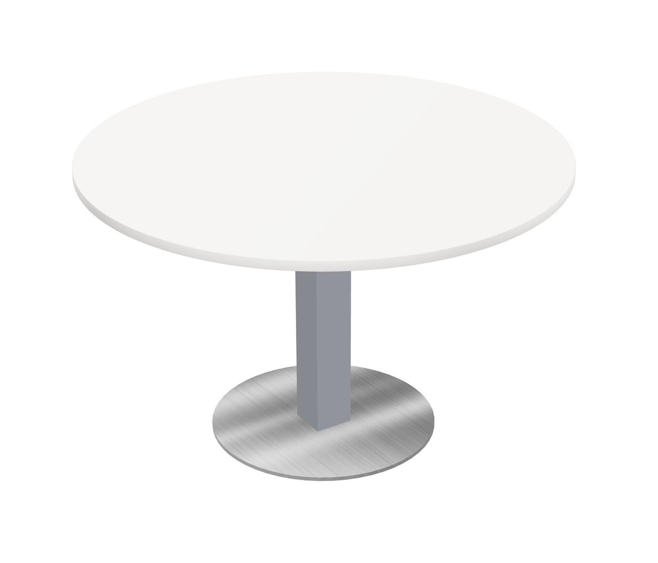 Table Modulaire Pour Bureau, Restaurant, Cafétéria, Salle De Pause Et Service De Restauration, Avec Plateau Blanc, Pieds Carrés Gris Et Base Ronde Chromée