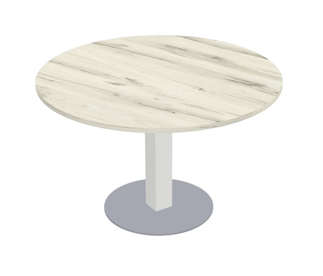 Table Modulaire Pour Bureau, Restaurant, Cafétéria, Salle De Pause Et Service De Restauration, Avec Plateau En Bois Heinne Holz, Pieds Carrés Blancs Et Base Ronde Grise