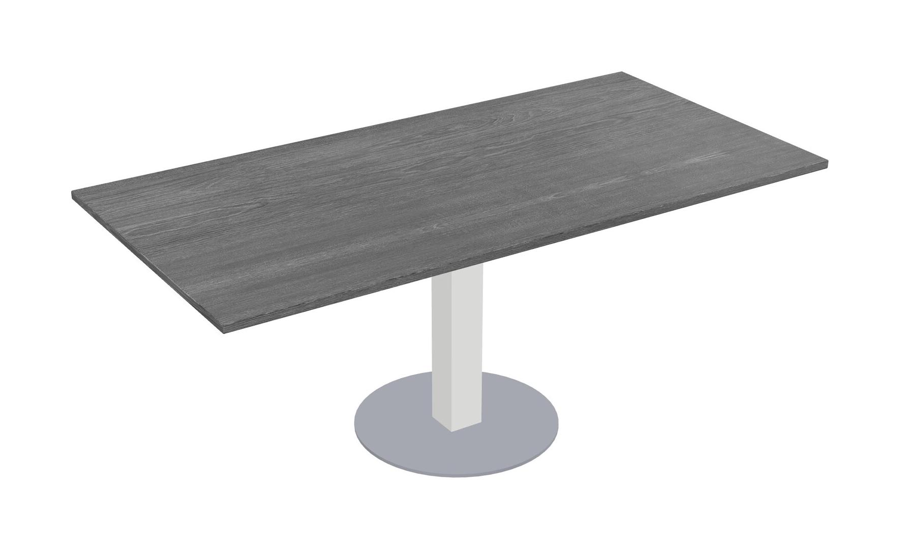 Table Modulaire Pour Bureau, Restaurant, Cafétéria, Salle De Pause Et Service De Restauration, Avec Plateau Gris, Pieds Carrés Blancs Et Base Ronde Grise
