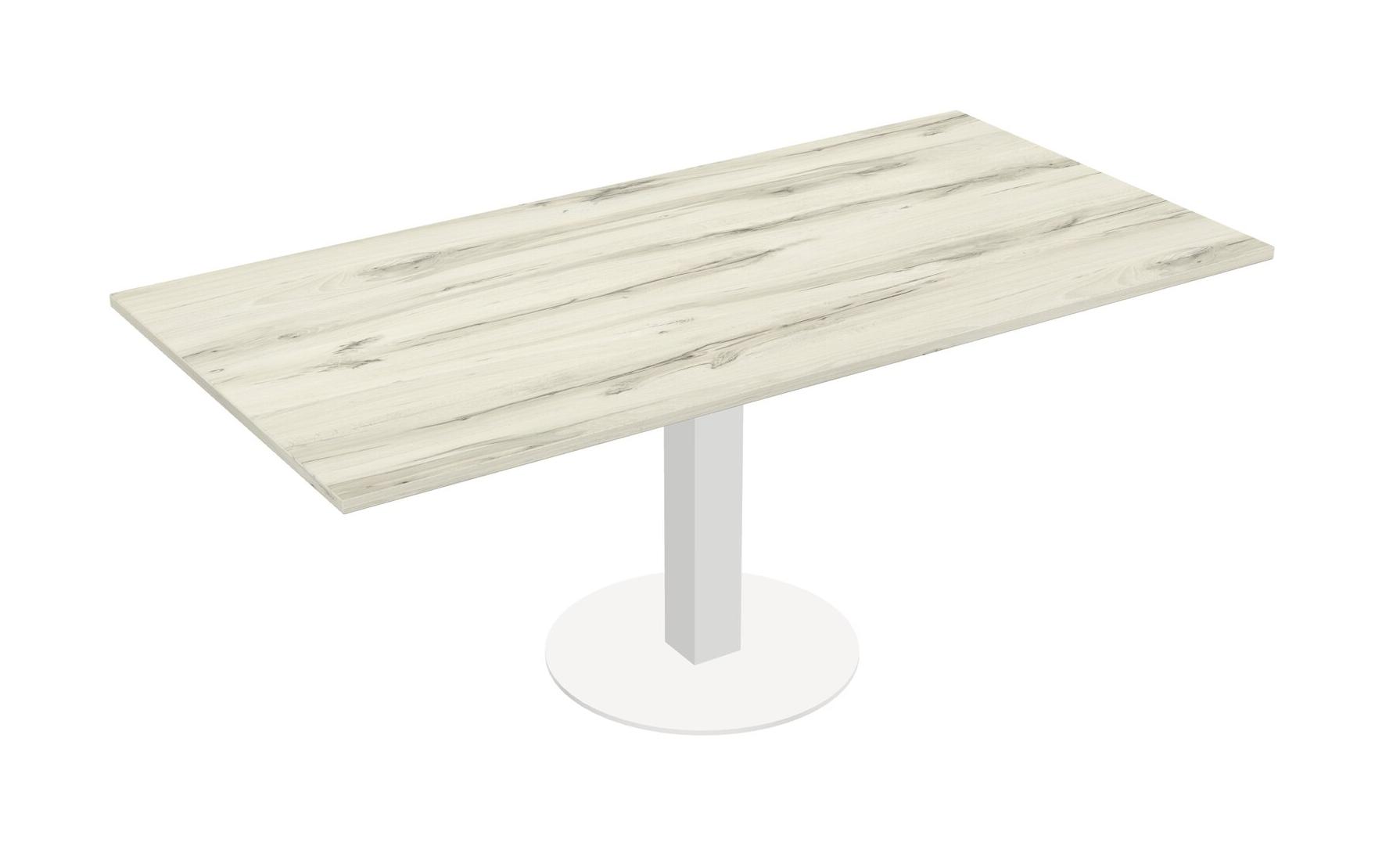 Table Modulaire Pour Bureau, Restaurant, Cafétéria, Salle De Pause Et Service De Restauration, Avec Plateau En Bois Heinne Holz, Pieds Carrés Blancs Et Base Ronde Blanche