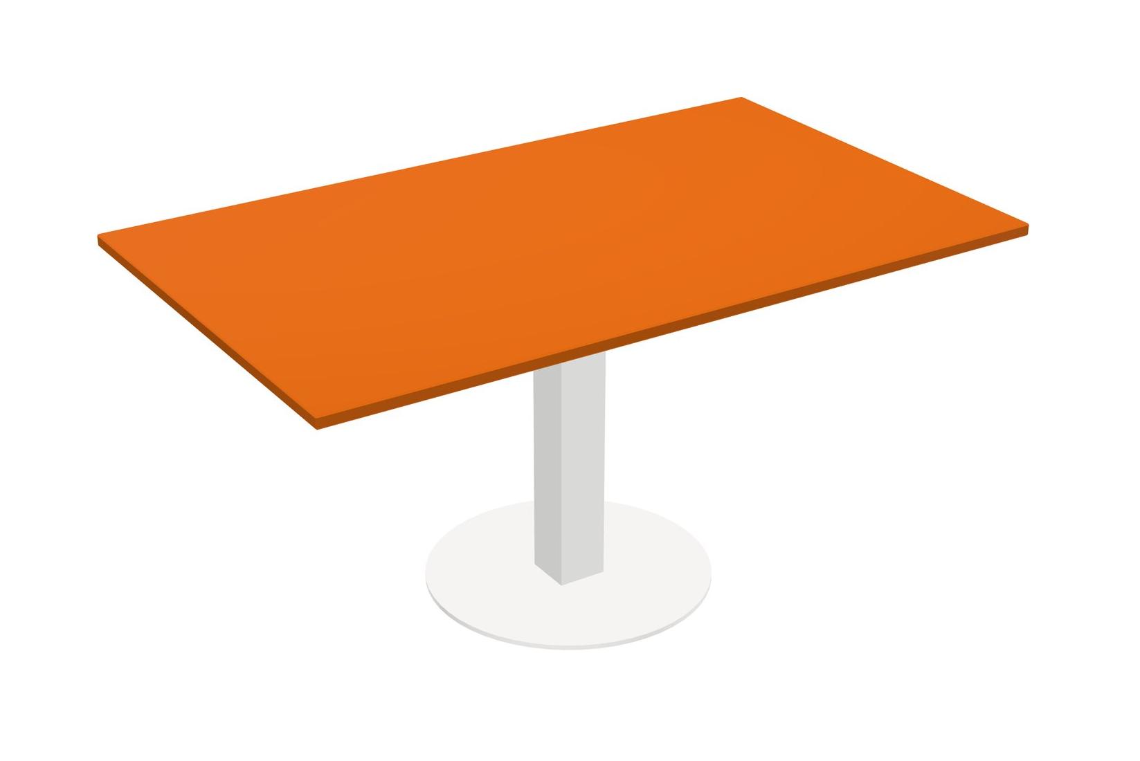 Table Modulaire Pour Bureau, Restaurant, Cafétéria, Salle De Pause Et Service De Restauration, Avec Plateau Orange, Pieds Carrés Blancs Et Base Ronde Blanche