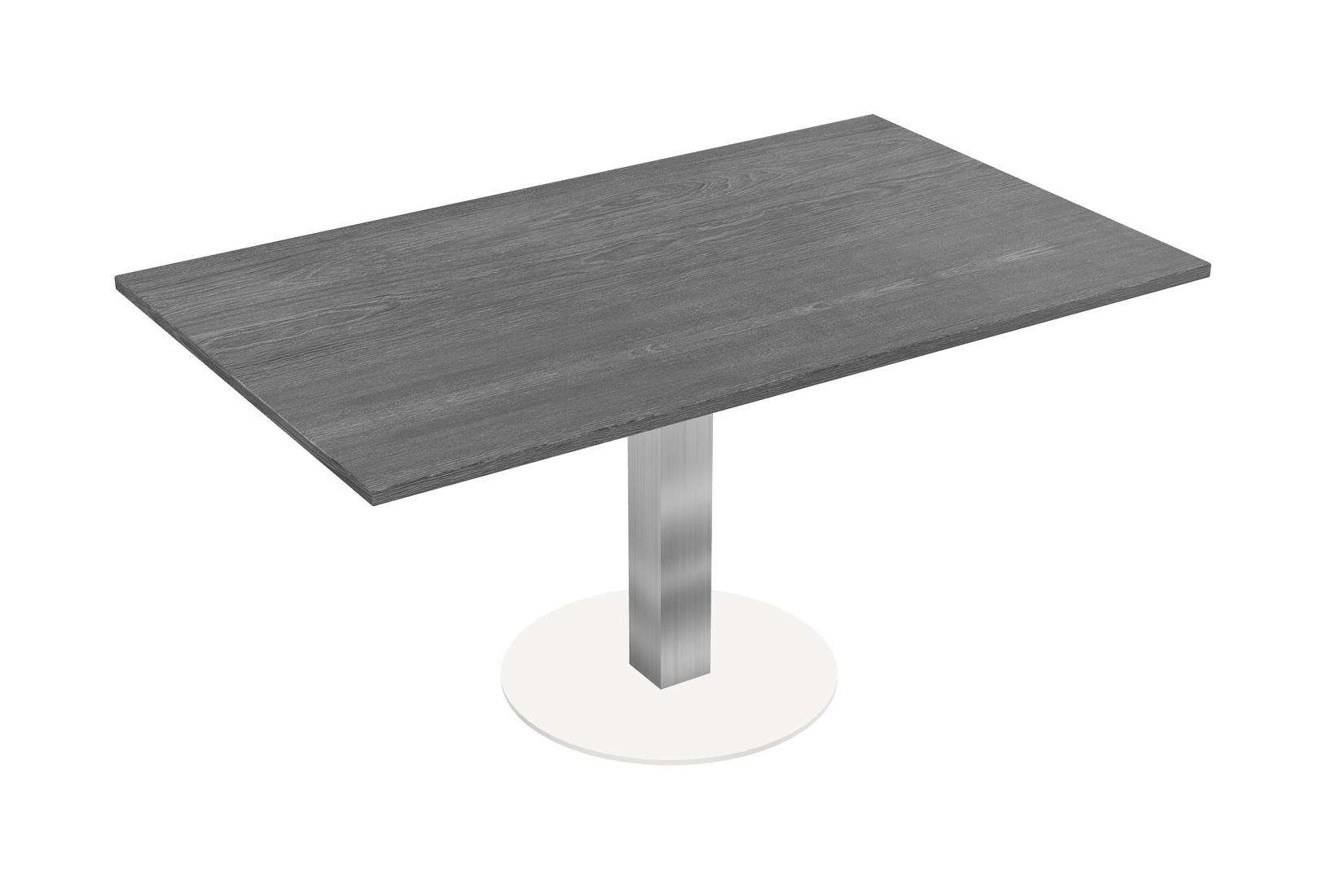 Table Modulaire Pour Bureau, Restaurant, Cafétéria, Salle De Pause Et Service De Restauration, Avec Plateau Gris, Pieds Carrés Chromés Et Base Ronde Blanche