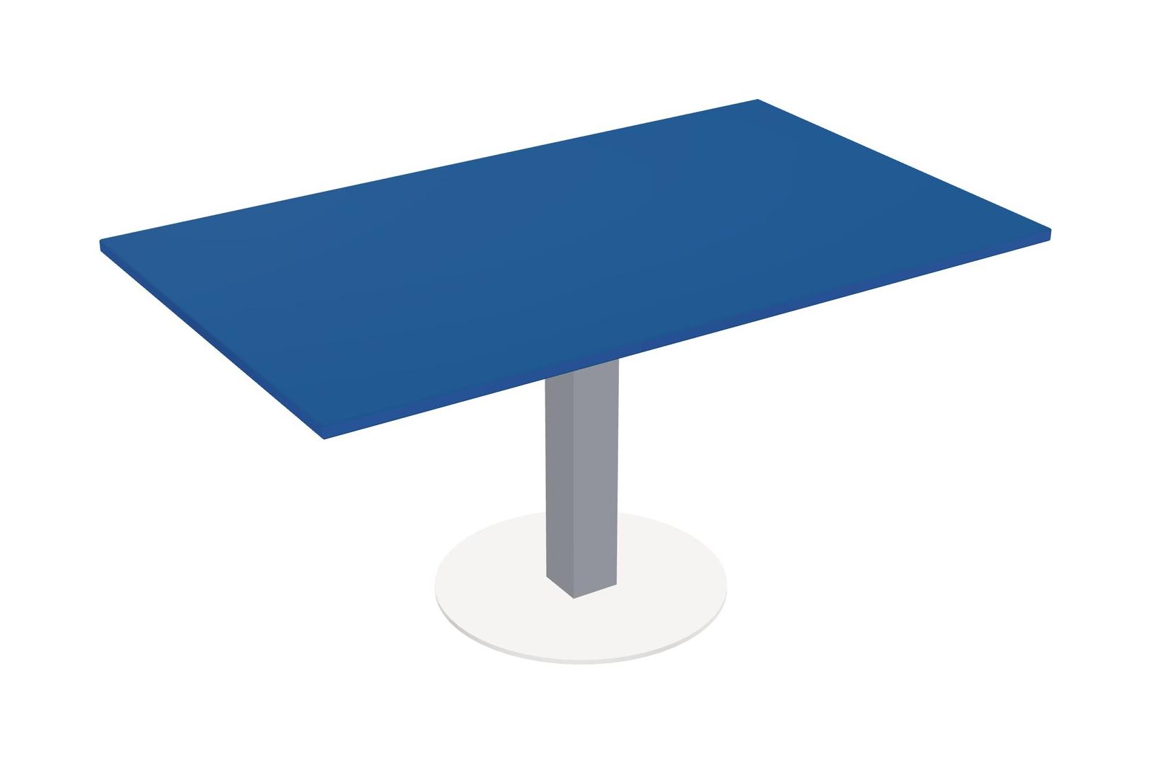 Table Modulaire Pour Bureau, Restaurant, Cafétéria, Salle De Pause Et Service De Restauration, Avec Plateau Bleu Prismatique, Pieds Carrés Gris Et Base Ronde Blanche