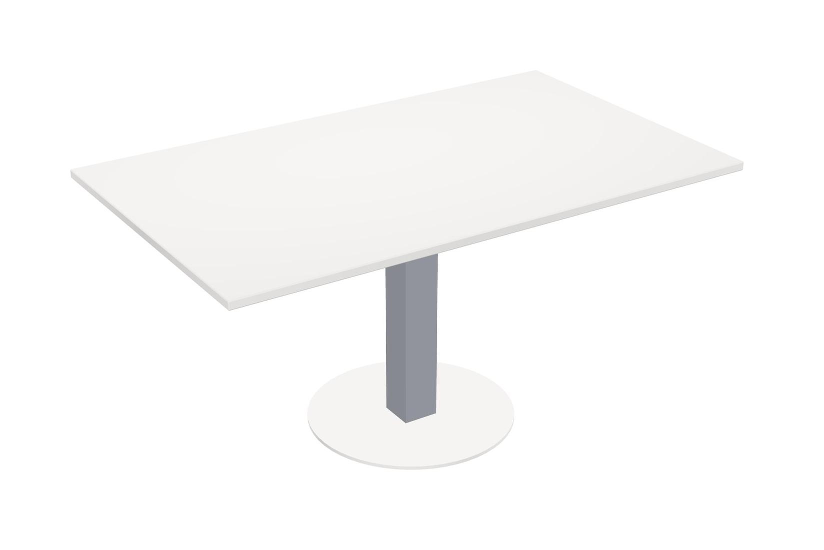 Table Modulaire Pour Bureau, Restaurant, Cafétéria, Salle De Pause Et Service De Restauration, Avec Plateau Blanc, Pieds Carrés Gris Et Base Ronde Blanche