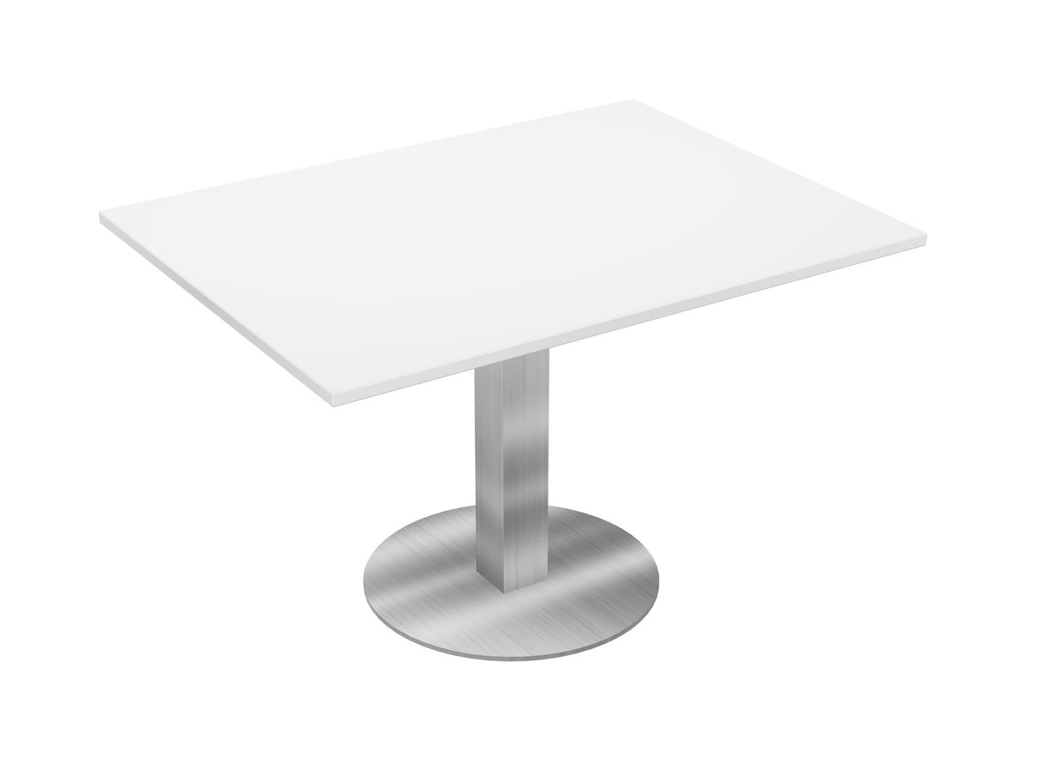 Table Modulaire Pour Bureau, Restaurant, Cafétéria, Salle De Pause Et Service De Restauration, Avec Plateau Blanc, Pieds Carrés Chromés Et Base Ronde Chromée