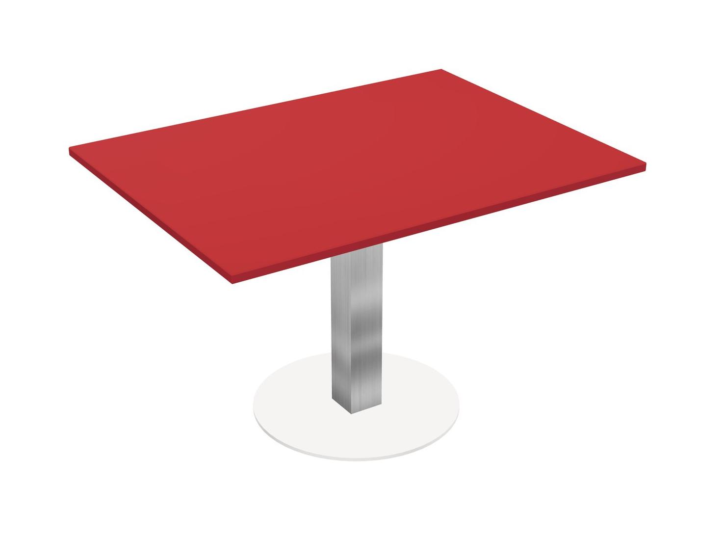 Table Modulaire Pour Bureau, Restaurant, Cafétéria, Salle De Pause Et Service De Restauration, Avec Plateau Rouge Prismatique, Pieds Carrés Chromés Et Base Ronde Blanche