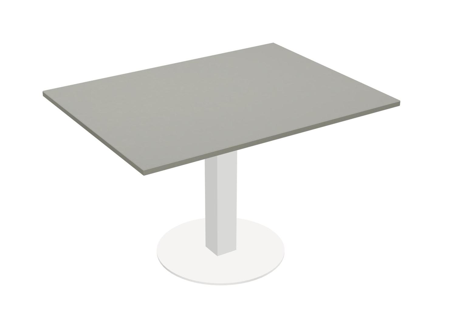 Table Modulaire Pour Bureau, Restaurant, Cafétéria, Salle De Pause Et Service De Restauration, Avec Plateau Gris Anthracite, Pieds Carrés Blancs Et Base Ronde Blanche