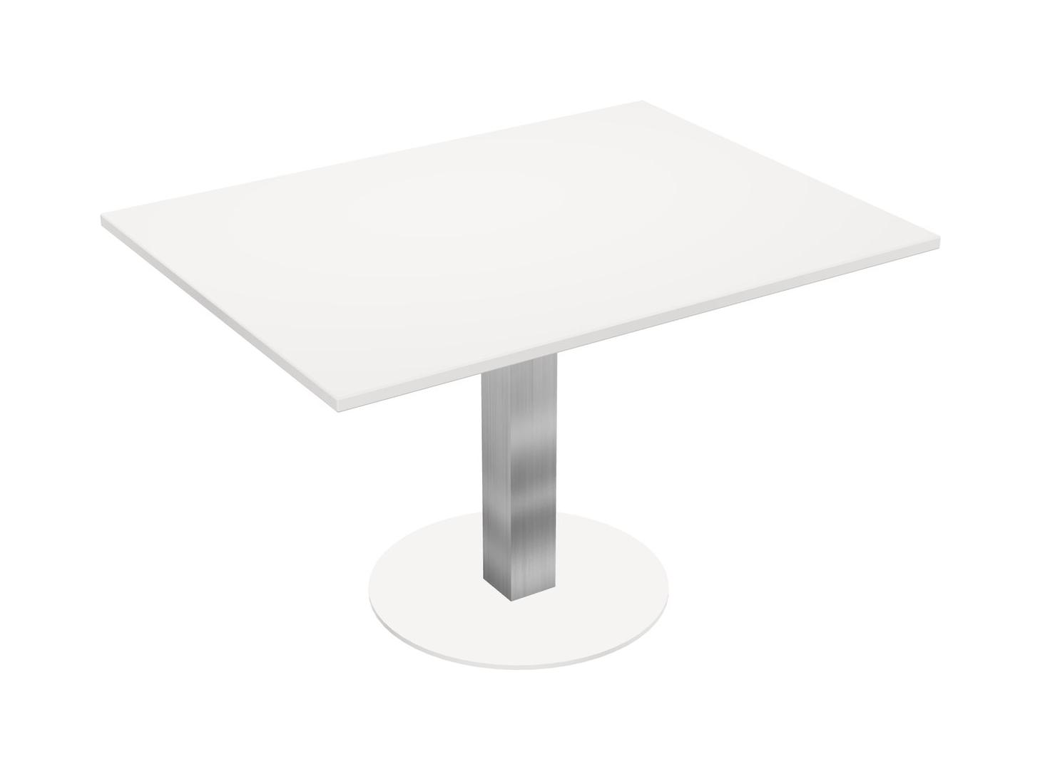 Table Modulaire Pour Bureau, Restaurant, Cafétéria, Salle De Pause Et Service De Restauration, Avec Plateau Blanc, Pieds Carrés Chromés Et Base Ronde Blanche