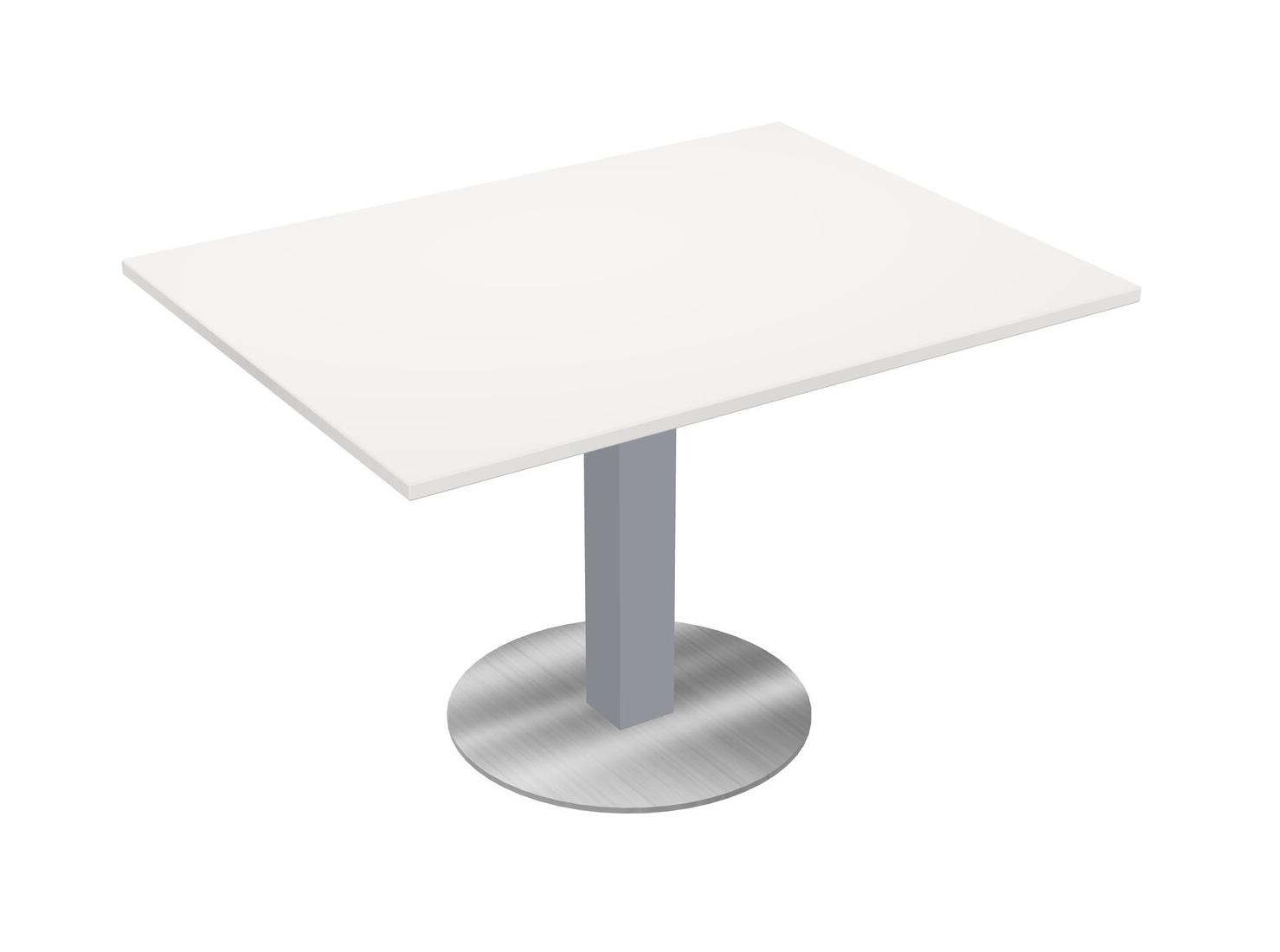 Table Modulaire Pour Bureau, Restaurant, Cafétéria, Salle De Pause Et Service De Restauration, Avec Plateau Blanc, Pieds Carrés Gris Et Base Ronde Chromée
