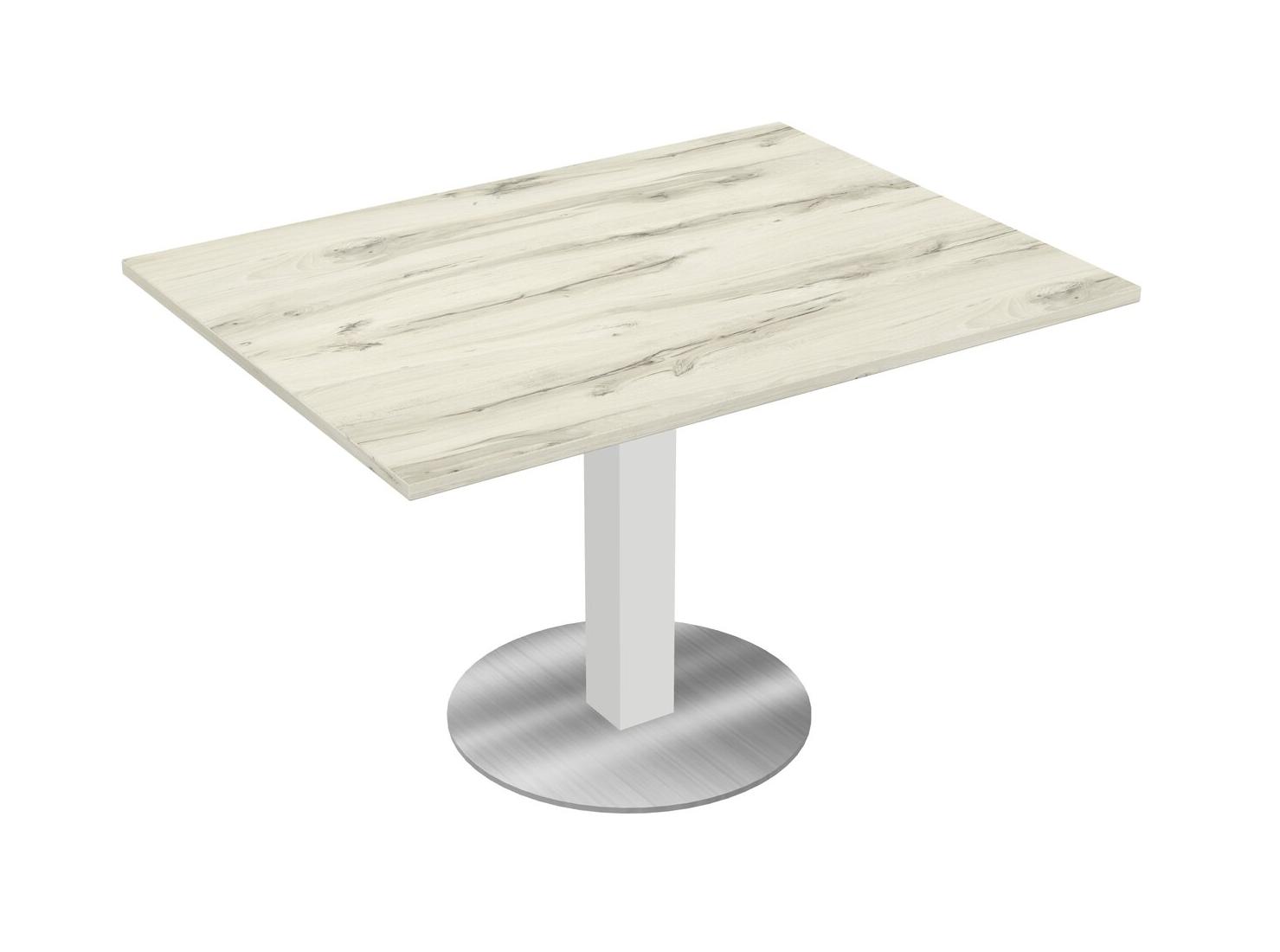 Table Modulaire Pour Bureau, Restaurant, Cafétéria, Salle De Pause Et Service De Restauration, Avec Plateau En Bois Heinne Holz, Pieds Carrés Blancs Et Base Ronde Chromée