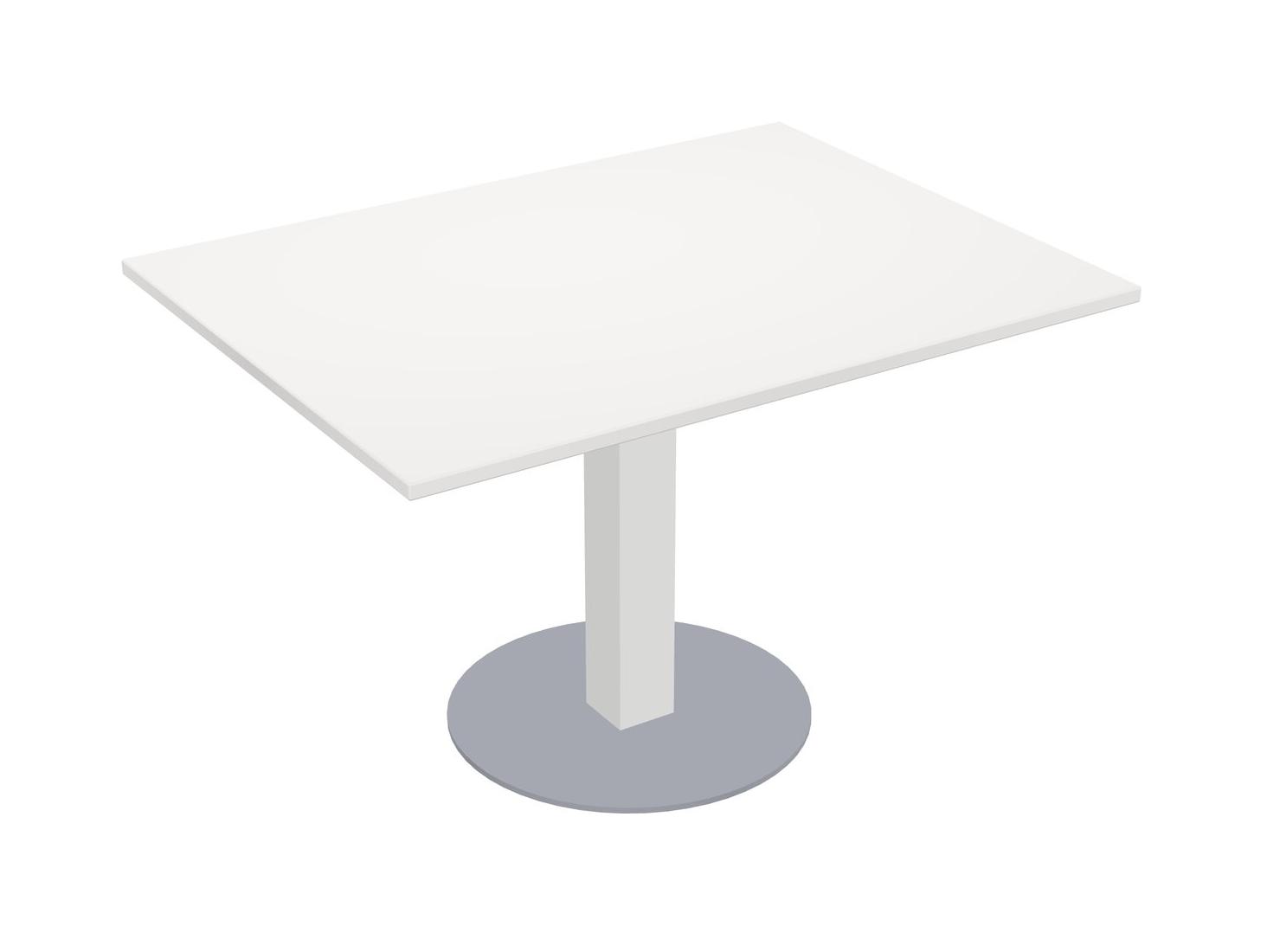 Table Modulaire Pour Bureau, Restaurant, Cafétéria, Salle De Pause Et Service De Restauration, Avec Plateau Blanc, Pieds Carrés Blancs Et Base Ronde Grise