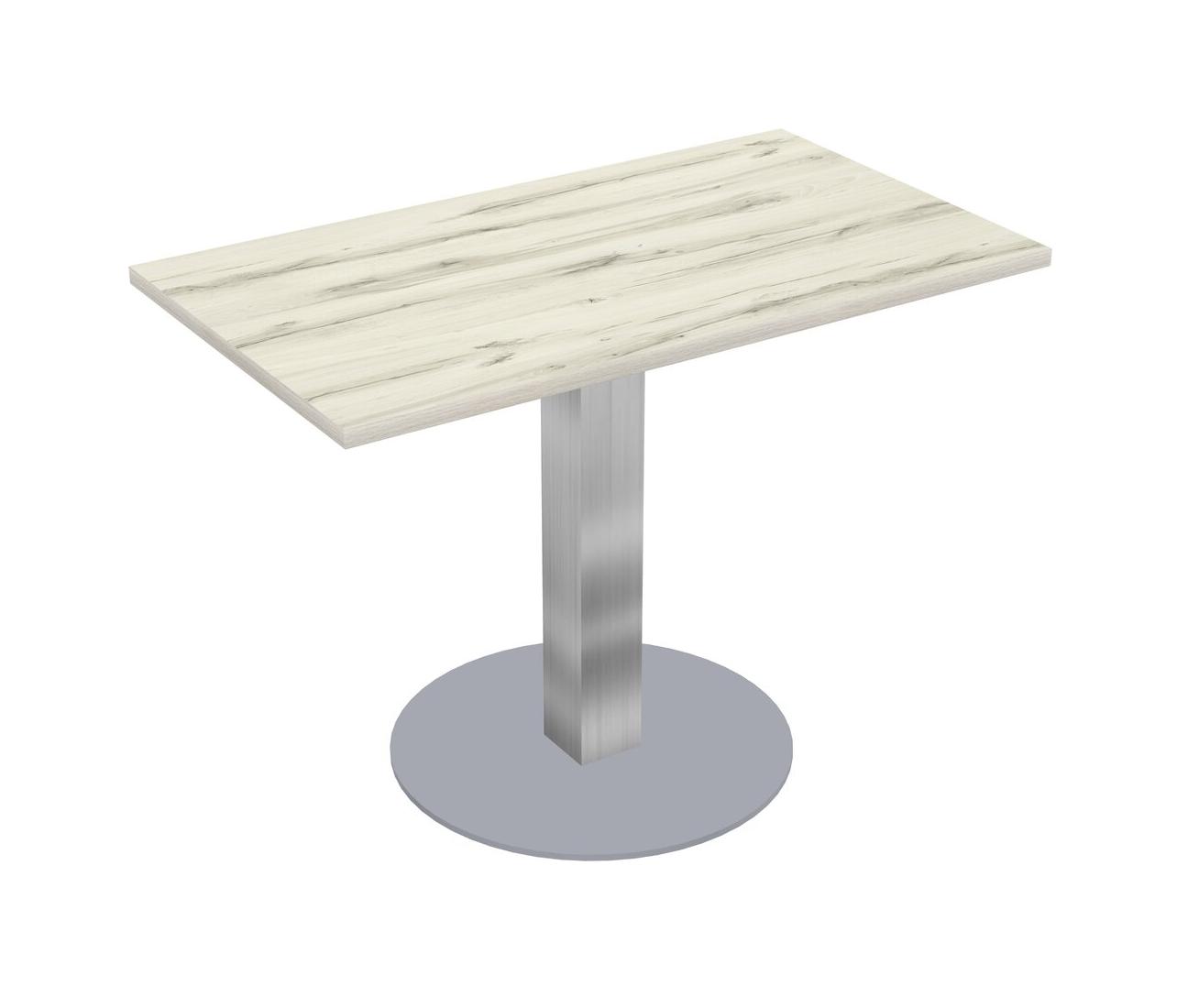 Table Modulaire Pour Bureau, Restaurant, Cafétéria, Salle De Pause Et Service De Restauration, Avec Plateau En Bois Heinne Holz, Pieds Carrés Chromés Et Base Ronde Grise