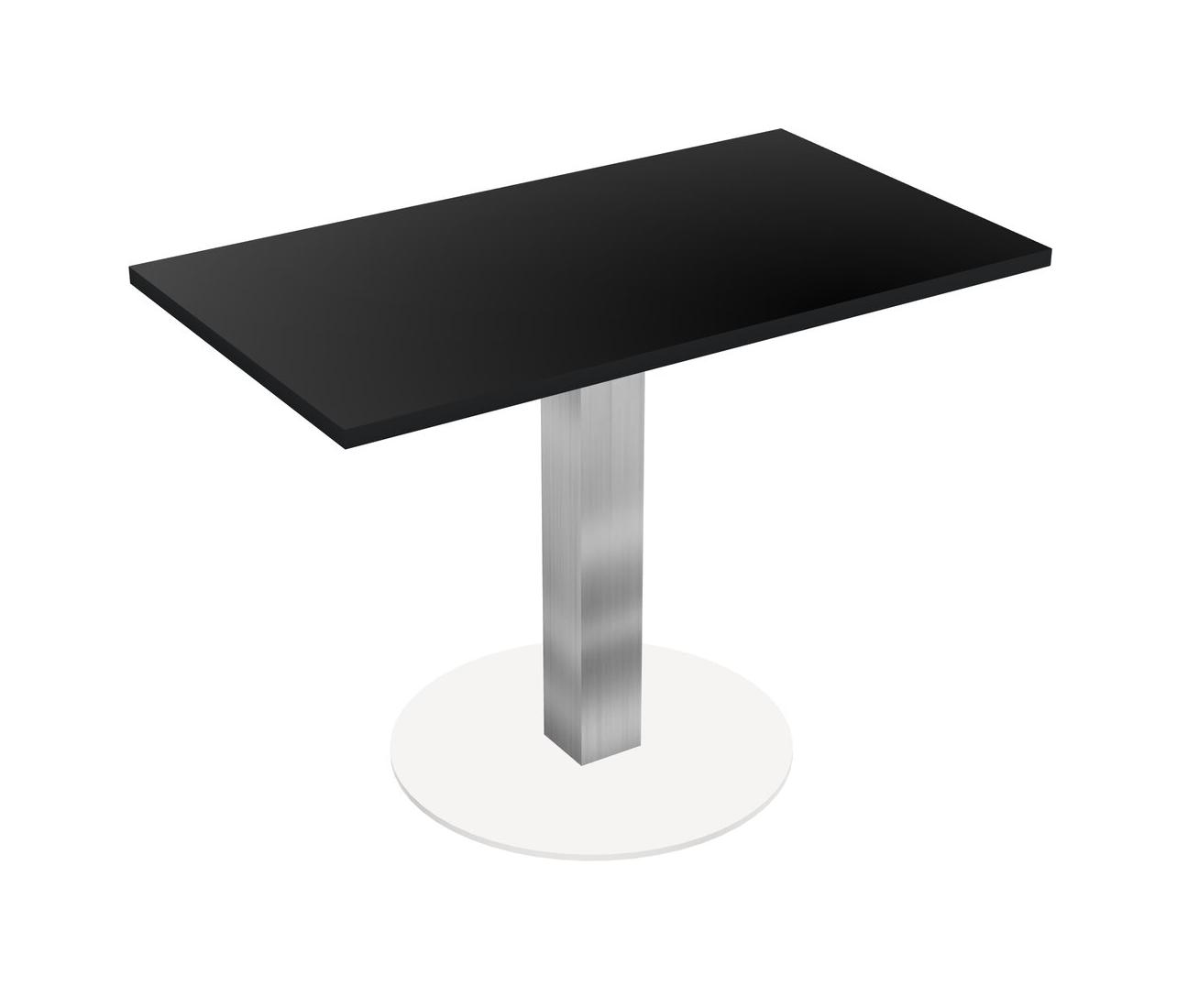 Table Modulaire Pour Bureau, Restaurant, Cafétéria, Salle De Pause Et Service De Restauration, Avec Plateau Noir, Pieds Carrés Chromés Et Base Ronde Blanche
