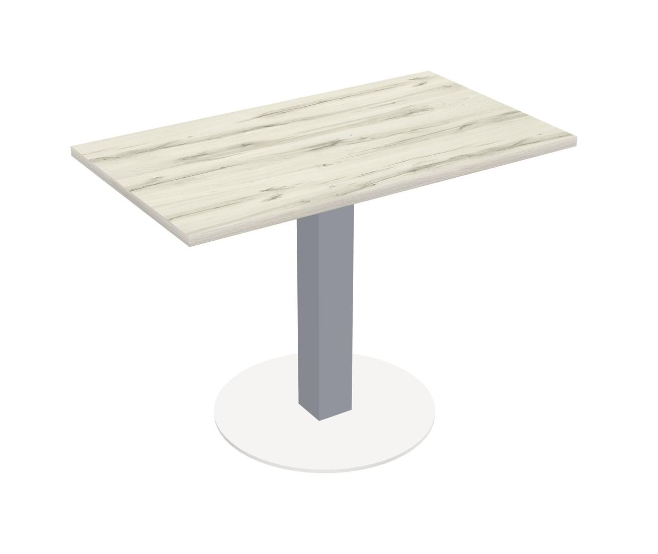 Table Modulaire Pour Bureau, Restaurant, Cafétéria, Salle De Pause Et Service De Restauration, Avec Plateau En Bois Heinne Holz, Pieds Carrés Gris Et Base Ronde Blanche