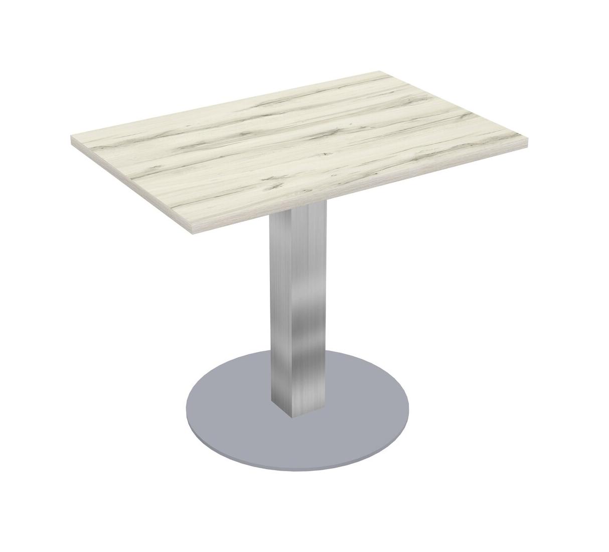 Table Modulaire Pour Bureau, Restaurant, Cafétéria, Salle De Pause Et Service De Restauration, Avec Plateau En Bois Heinne Holz, Pieds Carrés Chromés Et Base Ronde Grise