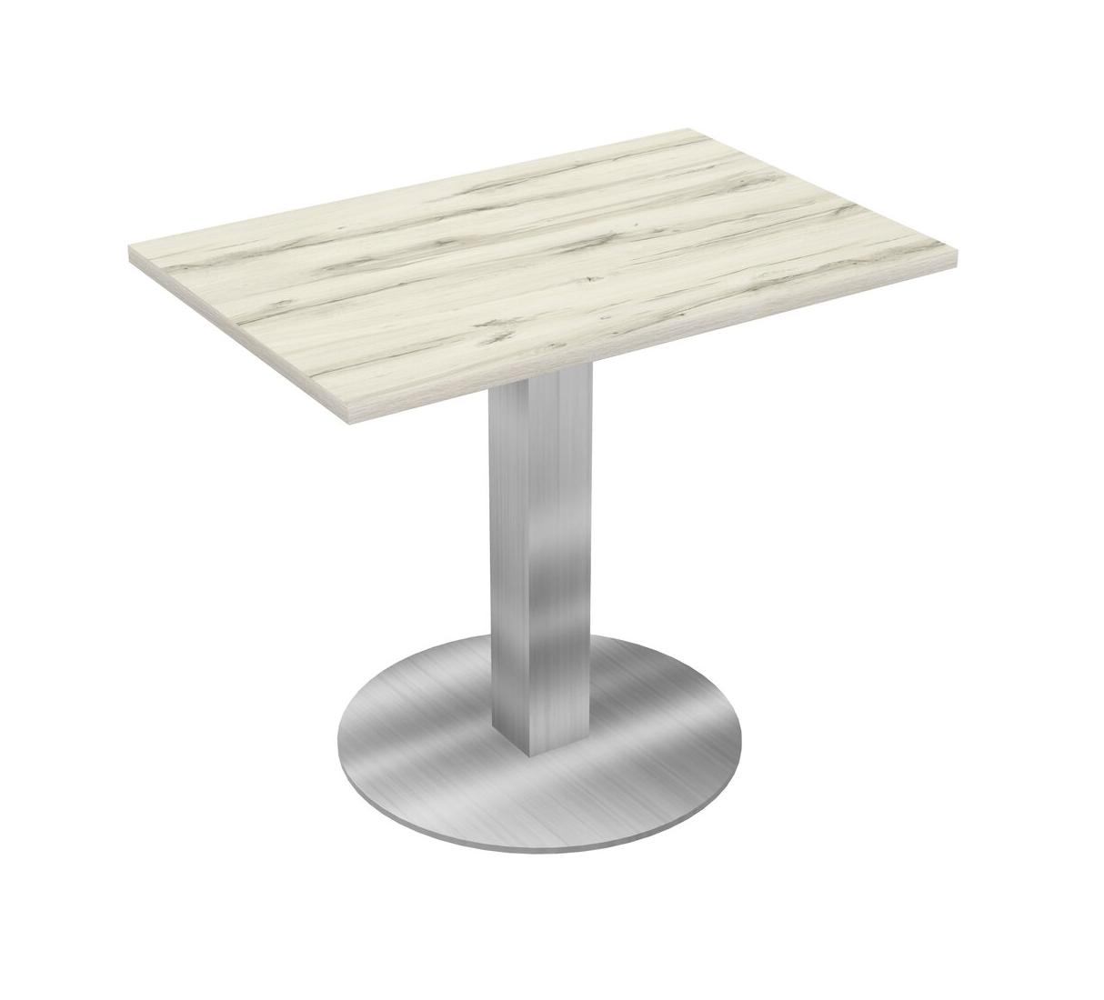 Table Modulaire Pour Bureau, Restaurant, Cafétéria, Salle De Pause Et Service De Restauration, Avec Plateau En Bois Heinne Holz, Pieds Carrés Chromés Et Base Ronde Chromée