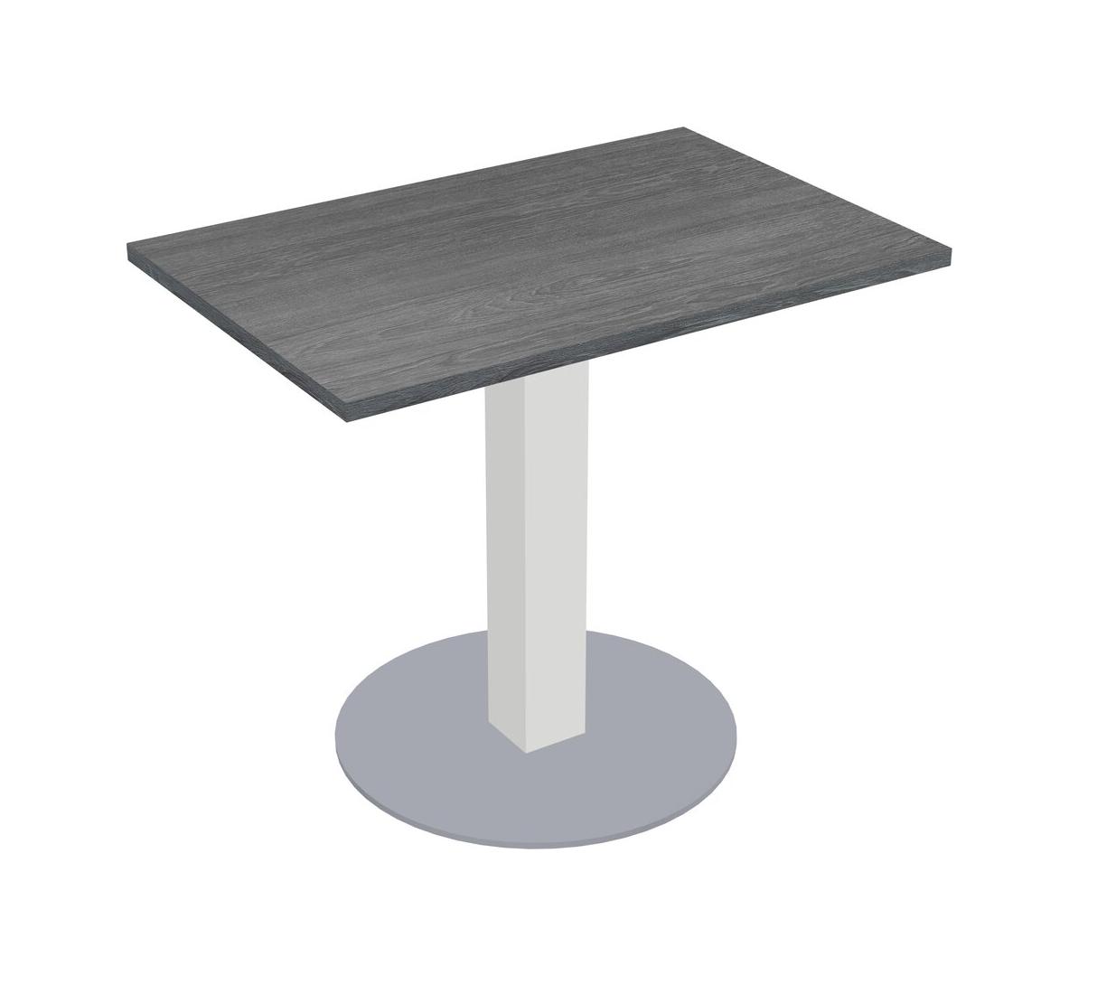Table Modulaire Pour Bureau, Restaurant, Cafétéria, Salle De Pause Et Service De Restauration, Avec Plateau Gris, Pieds Carrés Blancs Et Base Ronde Grise