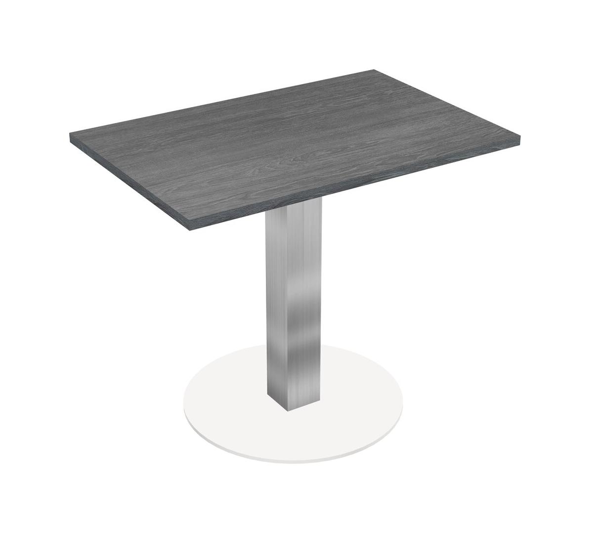 Table Modulaire Pour Bureau, Restaurant, Cafétéria, Salle De Pause Et Service De Restauration, Avec Plateau Gris, Pieds Carrés Chromés Et Base Ronde Blanche