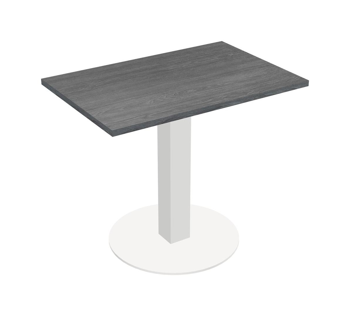 Table Modulaire Pour Bureau, Restaurant, Cafétéria, Salle De Pause Et Service De Restauration, Avec Plateau Gris, Pieds Carrés Blancs Et Base Ronde Blanche