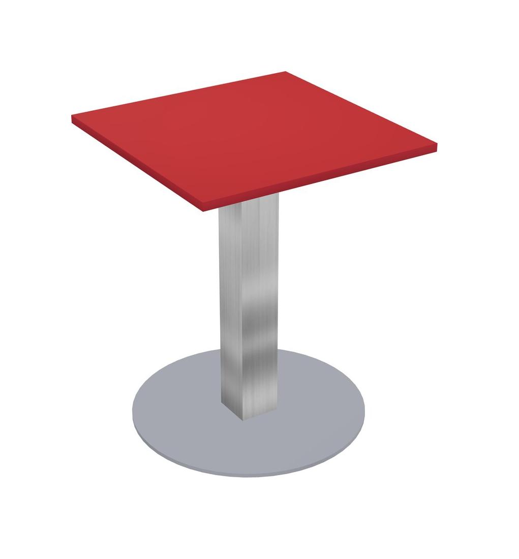 Table Modulaire Pour Bureau, Restaurant, Cafétéria, Salle De Pause Et Service De Restauration, Avec Plateau Rouge Prismatique, Pieds Carrés Chromés Et Base Ronde Grise