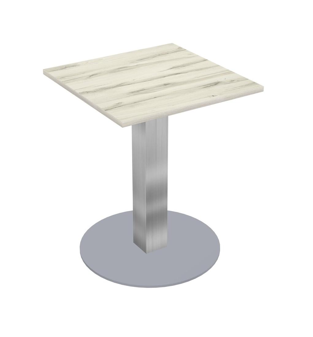 Table Modulaire Pour Bureau, Restaurant, Cafétéria, Salle De Pause Et Service De Restauration, Avec Plateau En Bois Heinne Holz, Pieds Carrés Chromés Et Base Ronde Grise