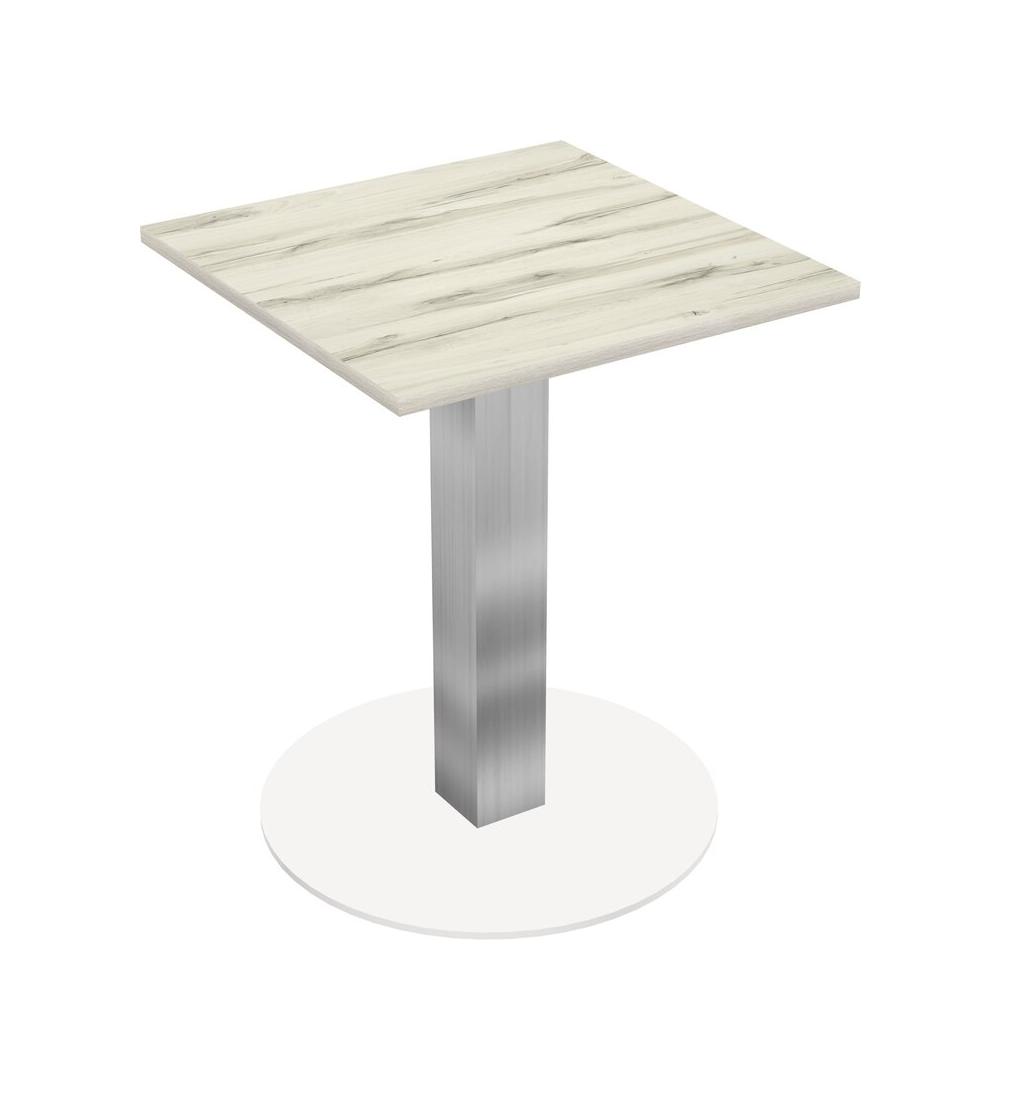 Table Modulaire Pour Bureau, Restaurant, Cafétéria, Salle De Pause Et Service De Restauration, Avec Plateau En Bois Heinne Holz, Pieds Carrés Chromés Et Base Ronde Blanche