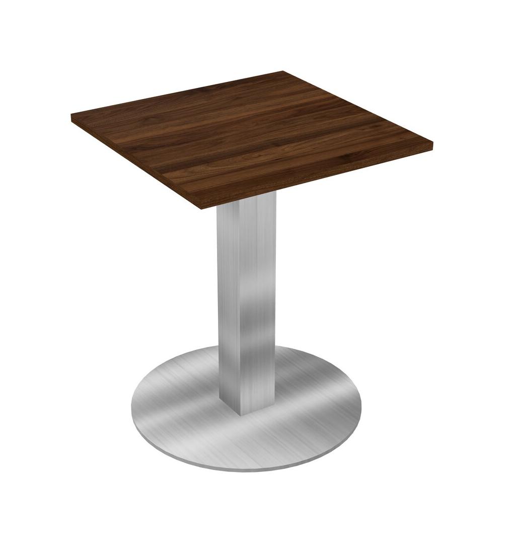 Table Modulaire Pour Bureau, Restaurant, Cafétéria, Salle De Pause Et Service De Restauration, Avec Plateau En Noyer De Colombie, Pieds Carrés Chromés Et Base Ronde Chromée