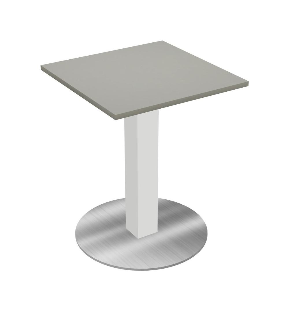 Table Modulaire Pour Bureau, Restaurant, Cafétéria, Salle De Pause Et Service De Restauration, Avec Plateau Gris Anthracite, Pieds Carrés Blancs Et Base Ronde Chromée