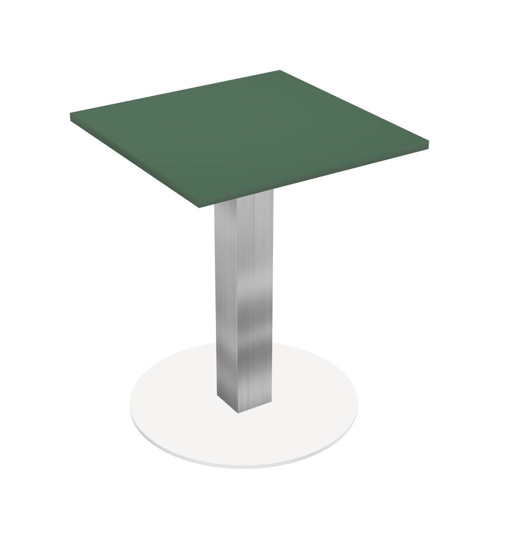 Table Modulaire Pour Bureau, Restaurant, Cafétéria, Salle De Pause Et Service De Restauration, Avec Plateau Vert, Pieds Carrés Chromés Et Base Ronde Blanche