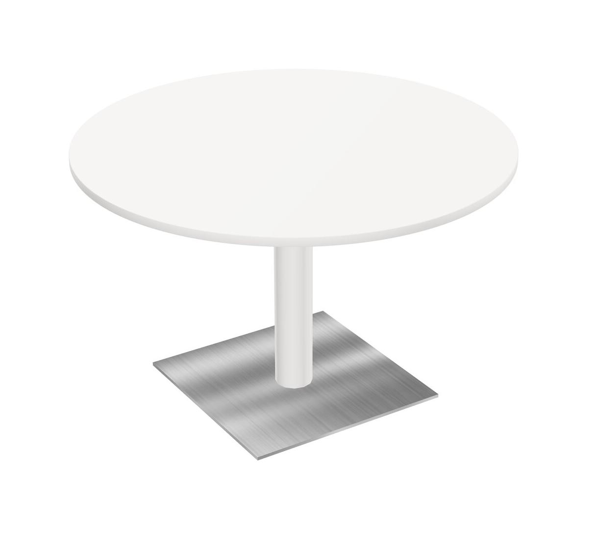 Table Modulaire Pour Bureau, Restaurant, Cafétéria, Salle De Pause Et Service De Restauration, Avec Plateau Blanc, Pieds Ronds Blancs Et Base Carrée Chromée