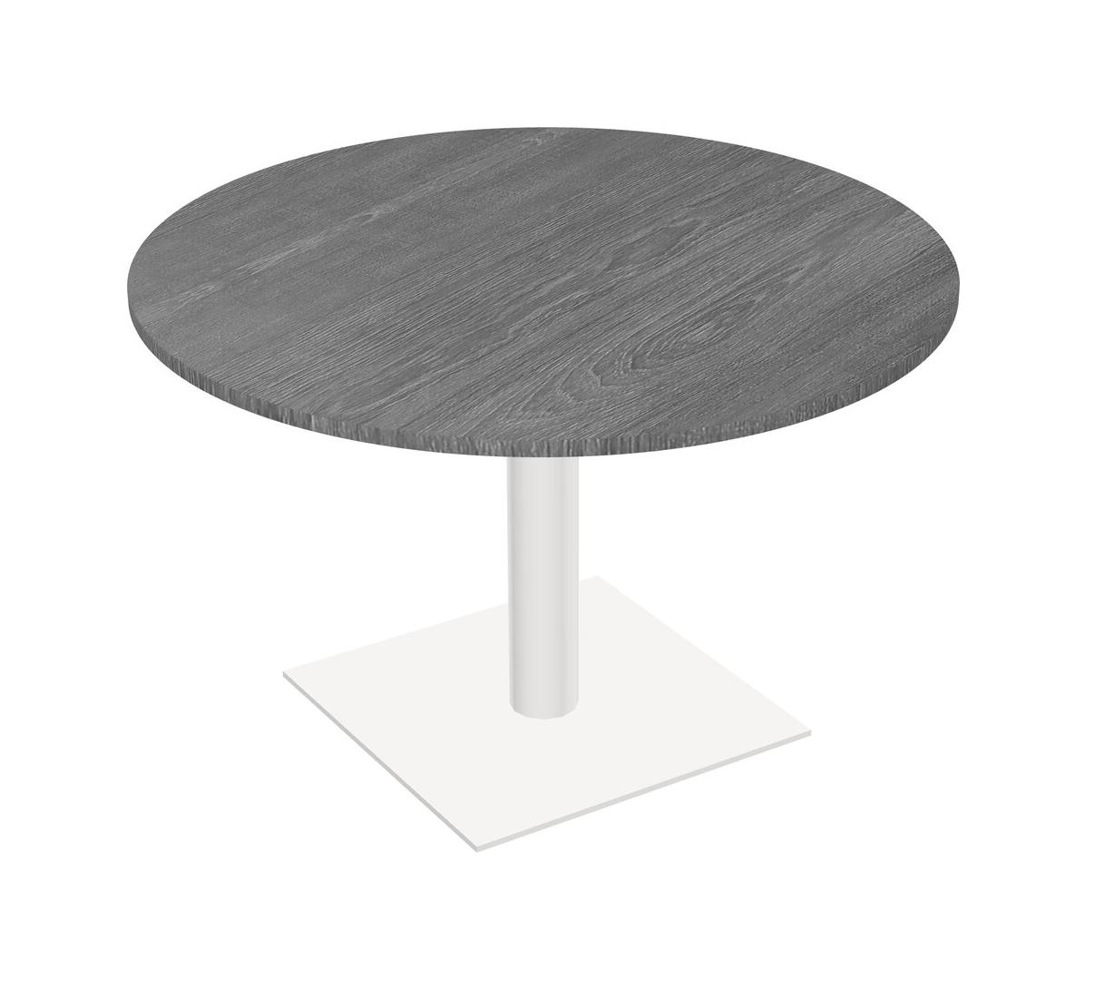 Table Modulaire Pour Bureau, Restaurant, Cafétéria, Salle De Pause Et Service De Restauration, Avec Plateau Gris, Pieds Ronds Blancs Et Base Carrée Blanche