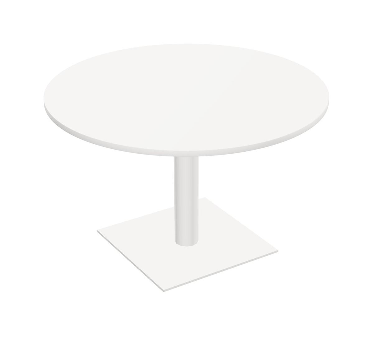 Table Modulaire Pour Bureau, Restaurant, Cafétéria, Salle De Pause Et Service De Restauration, Avec Plateau Blanc, Pieds Ronds Blancs Et Base Carrée Blanche