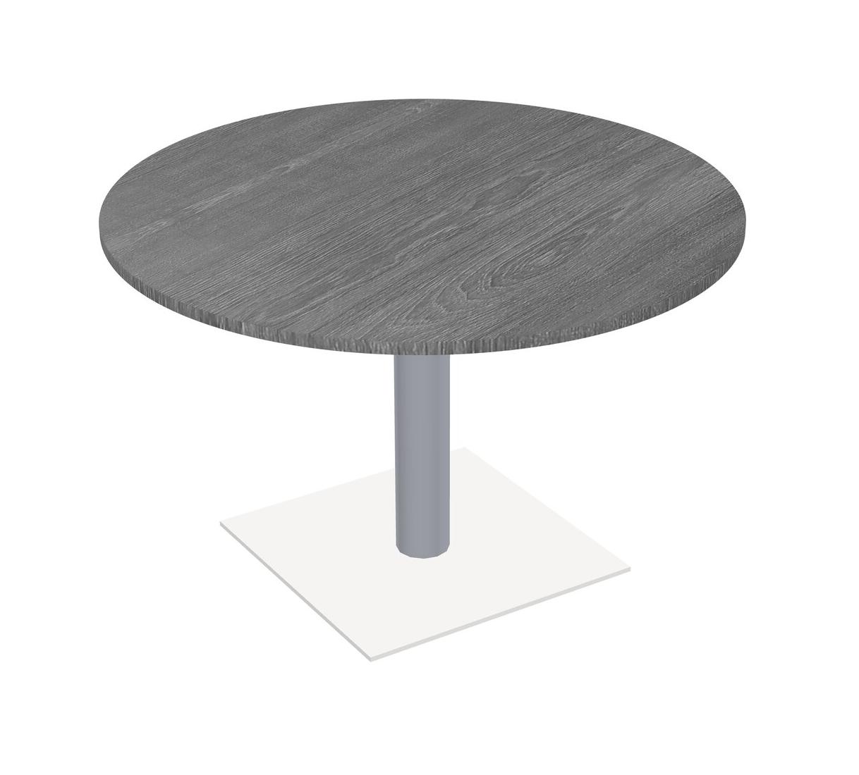 Table Modulaire Pour Bureau, Restaurant, Cafétéria, Salle De Pause Et Service De Restauration, Avec Plateau Gris, Pieds Ronds Gris Et Base Carrée Blanche