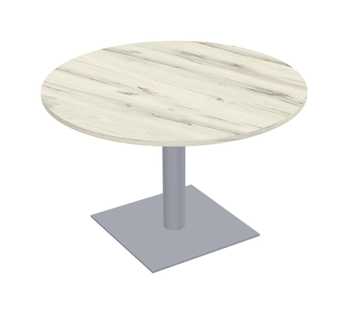 Table Modulaire Pour Bureau, Restaurant, Cafétéria, Salle De Pause Et Service De Restauration, Avec Plateau En Bois Heinne Holz, Pieds Ronds Gris Et Base Carrée Grise