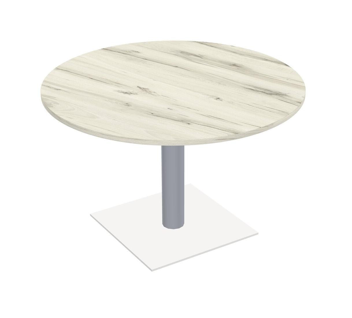 Table Modulaire Pour Bureau, Restaurant, Cafétéria, Salle De Pause Et Service De Restauration, Avec Plateau En Bois Heinne Holz, Pieds Ronds Gris Et Base Carrée Blanche