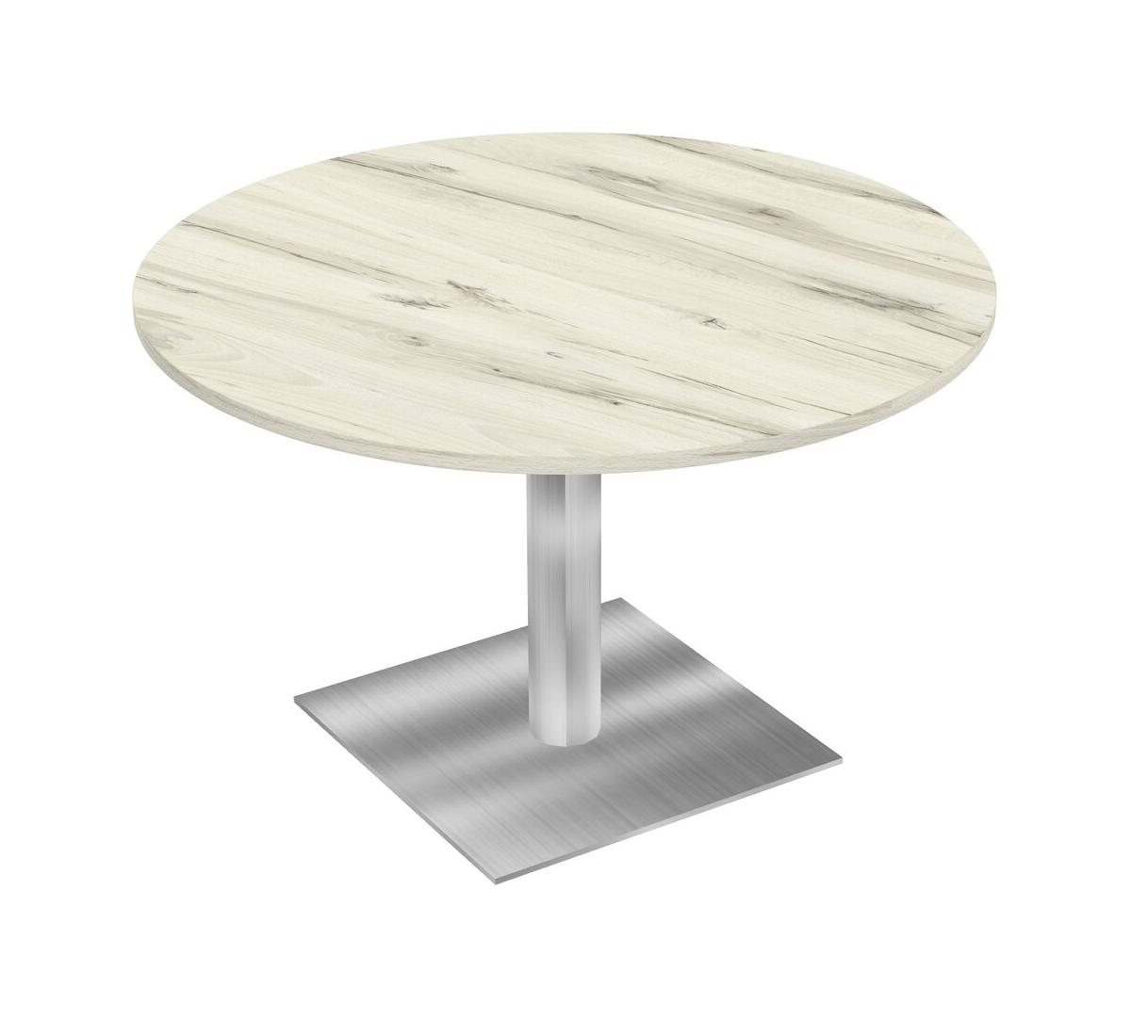 Table Modulaire Pour Bureau, Restaurant, Cafétéria, Salle De Pause Et Service De Restauration, Avec Plateau En Bois Heinne Holz, Pieds Ronds Chromés Et Base Carrée Chromée