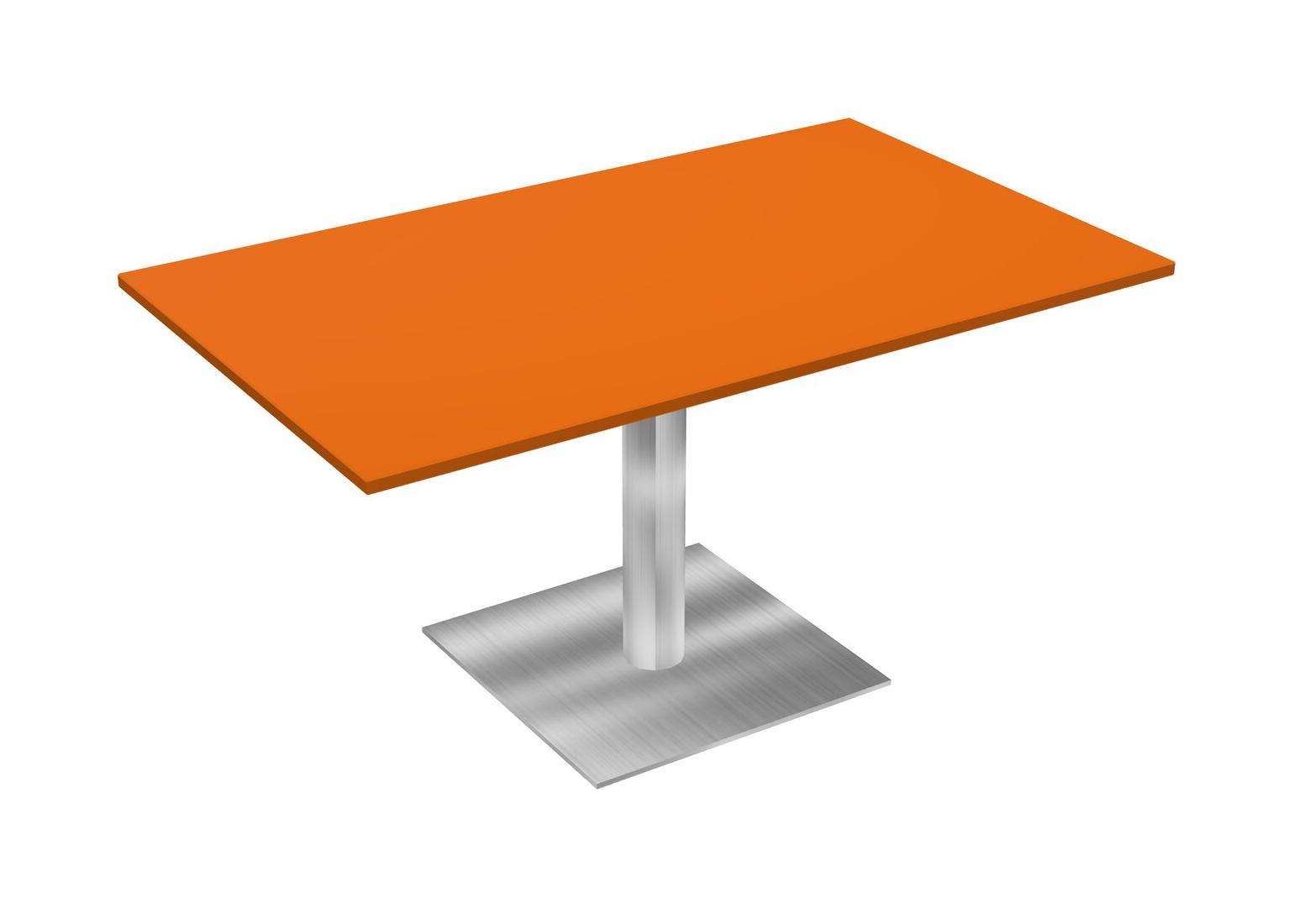 Table Modulaire Pour Bureau, Restaurant, Cafétéria, Salle De Pause Et Service De Restauration, Avec Plateau Orange, Pieds Ronds Chromés Et Base Carrée Chromée