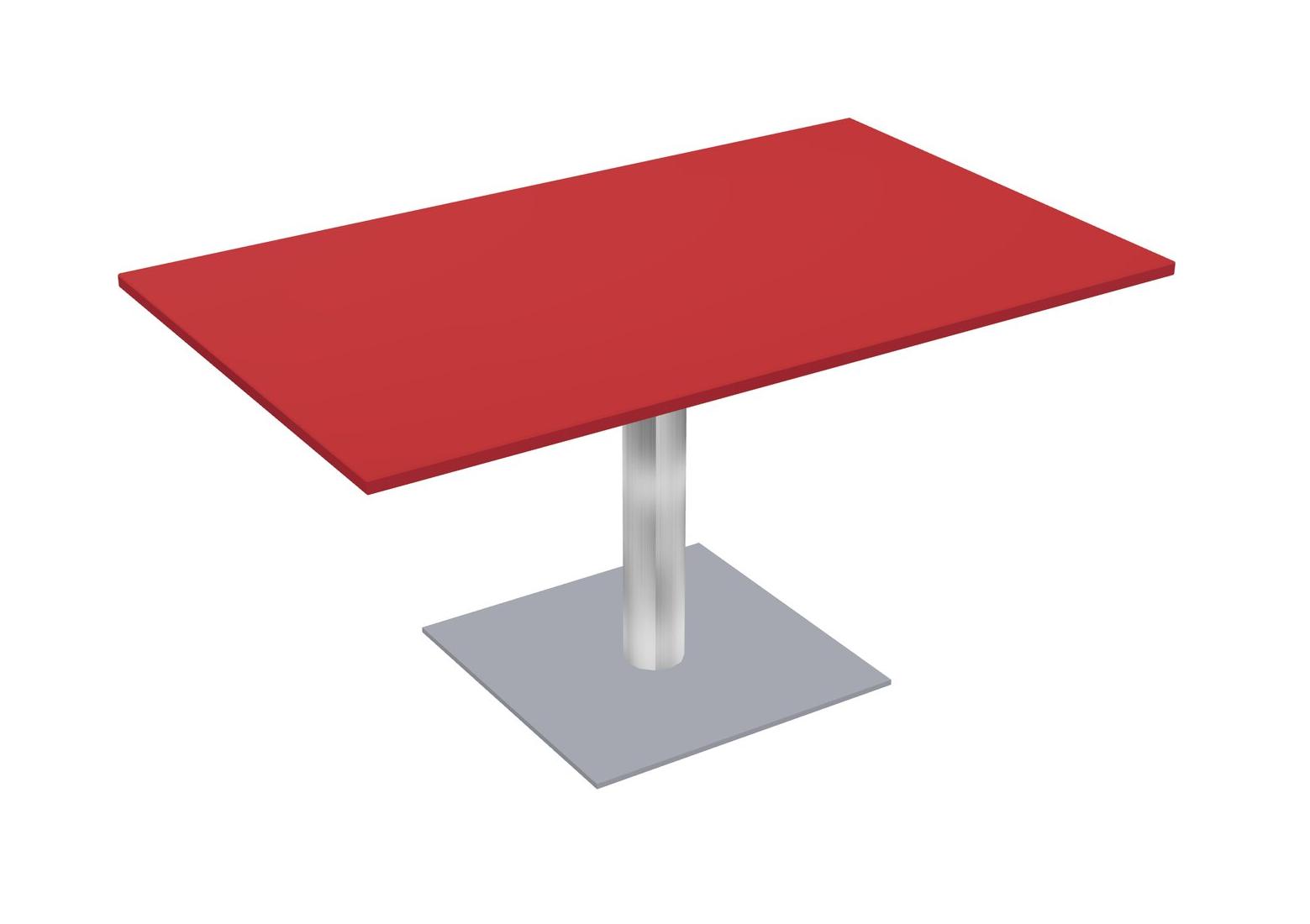 Table Modulaire Pour Bureau, Restaurant, Cafétéria, Salle De Pause Et Service De Restauration, Avec Plateau Rouge Prismatique, Pieds Ronds Chromés Et Base Carrée Grise