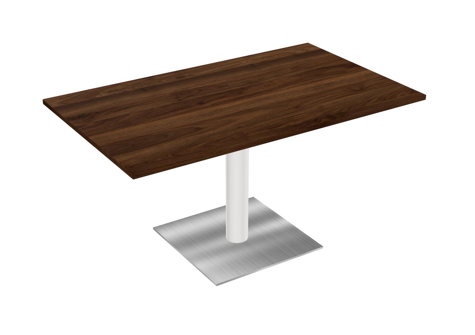 Table Modulaire Pour Bureau, Restaurant, Cafétéria, Salle De Pause Et Service De Restauration, Avec Plateau En Noyer De Colombie, Pieds Ronds Blancs Et Base Carrée Chromée