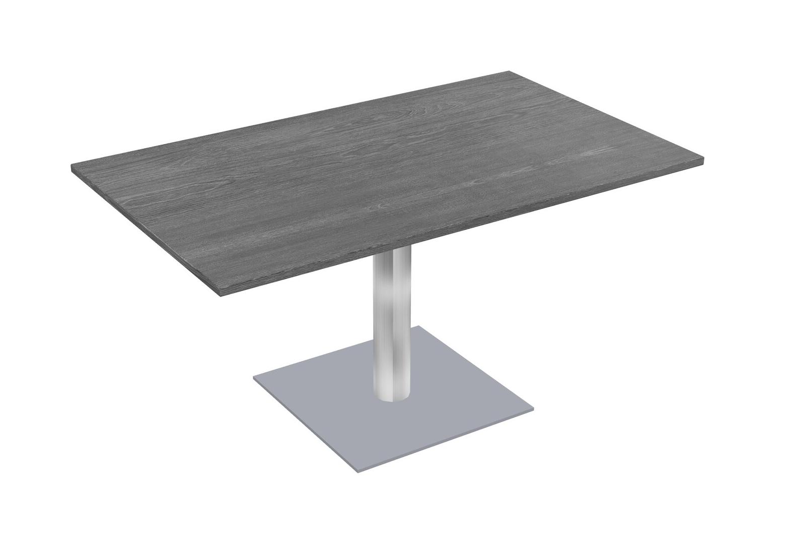 Table Modulaire Pour Bureau, Restaurant, Cafétéria, Salle De Pause Et Service De Restauration, Avec Plateau Gris, Pieds Ronds Chromés Et Base Carrée Grise