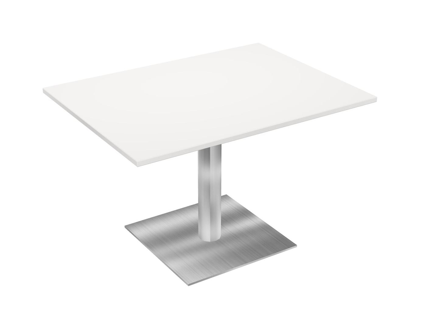 Table Modulaire Pour Bureau, Restaurant, Cafétéria, Salle De Pause Et Service De Restauration, Avec Plateau Blanc, Pieds Ronds Chromés Et Base Carrée Chromée
