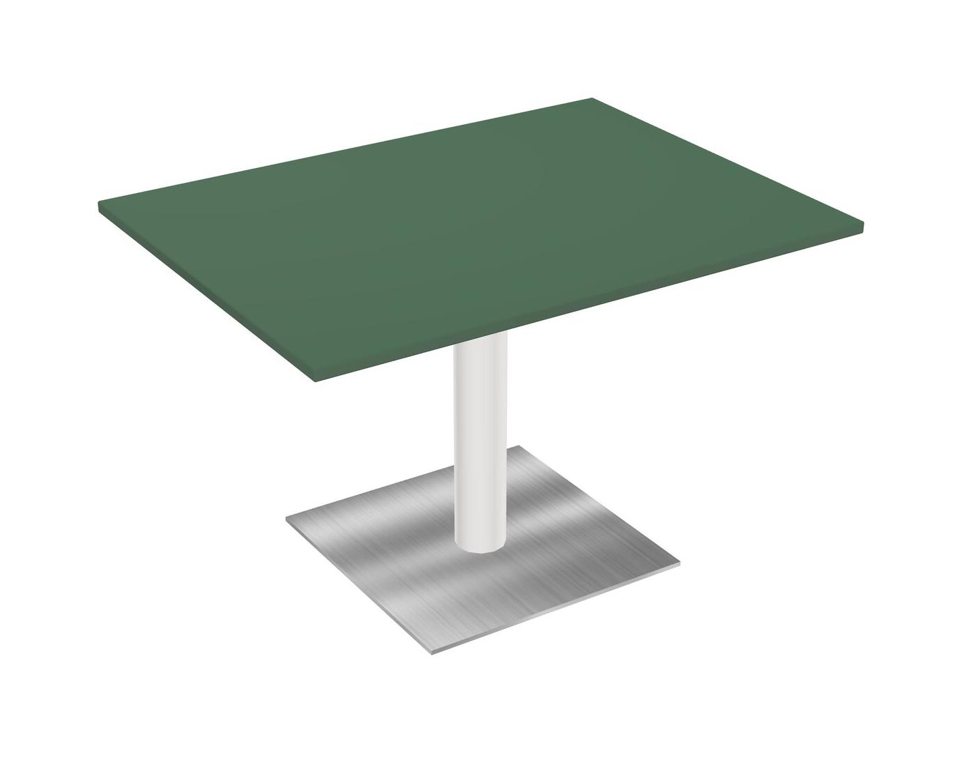 Table Modulaire Pour Bureau, Restaurant, Cafétéria, Salle De Pause Et Service De Restauration, Avec Plateau Vert, Pieds Ronds Blancs Et Base Carrée Chromée