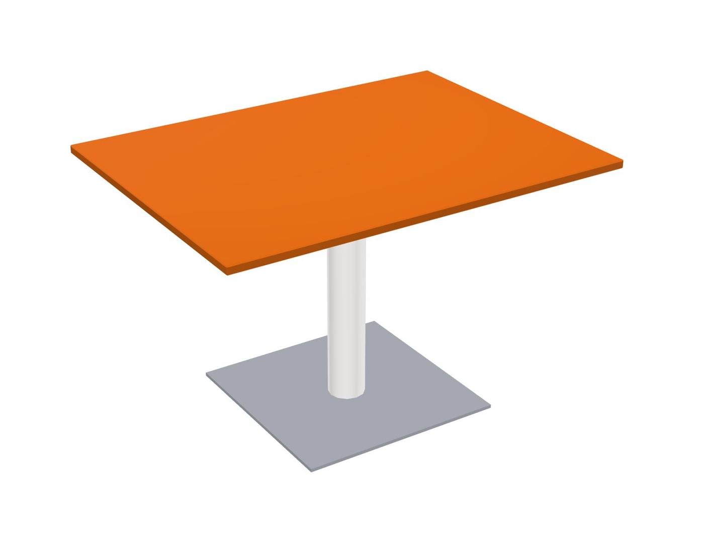 Table Modulaire Pour Bureau, Restaurant, Cafétéria, Salle De Pause Et Service De Restauration, Avec Plateau Orange, Pieds Ronds Blancs Et Base Carrée Grise